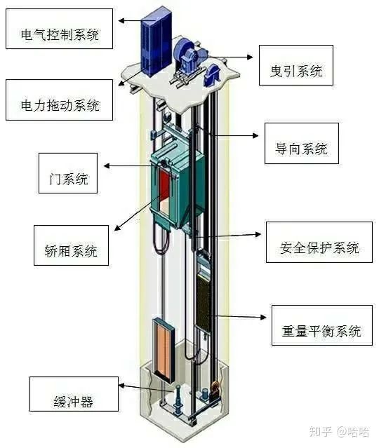 一、曳引系統(tǒng):電梯曳系統(tǒng)的功能是輸出動力和傳遞動力,驅(qū)動電梯運行。主要由曳引機(jī),曳引鋼絲繩,導(dǎo)向輪和反繩輪組成。拽引機(jī)為電梯的運行提供動力,由電動機(jī),拽引輪,連軸器,減速箱,和電磁制動器組成。拽引鋼絲的兩端分別連轎廂和對重,依靠鋼絲繩和拽引輪之間的摩擦來驅(qū)動轎廂升降。導(dǎo)向輪的作用是分開轎廂和對重的間距,采用復(fù)繞型還可以增加拽引力。